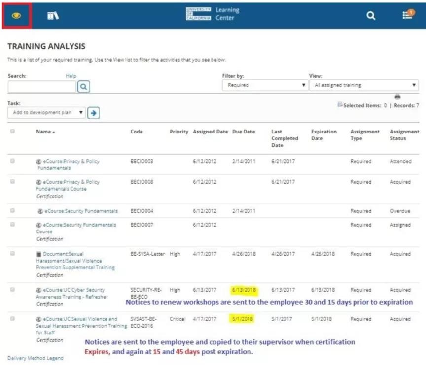 制定完OKR后,管理者和职员可以登录加州大学伯克利分校学习中心(UCLearning Center),查看和管理OKR任务的完成进展。下图为学习中心的操作界面,相关人员可以通过该平台进行计划和任务的管理。