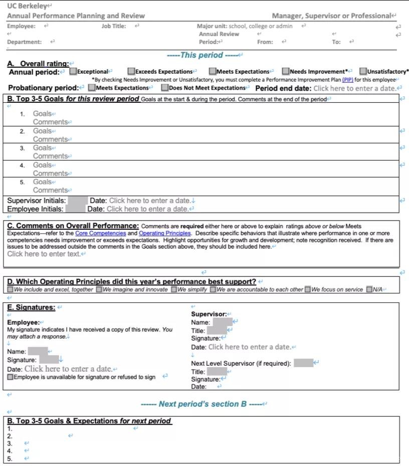 加州大学伯克利分校的职员绩效计划与评审表